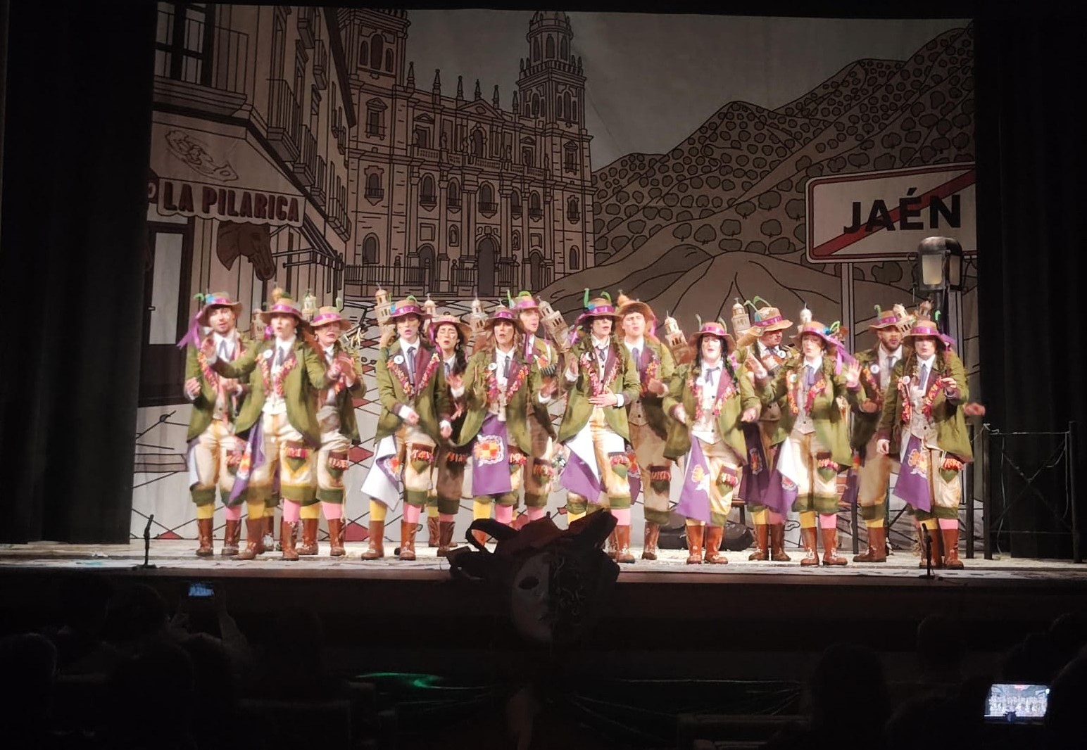 "Nos inspira en nuestros pueblos, nuestro acento, para que no perdamos la esencia de quienes somos", han indicado. Con una puesta en escena "muy cuidada", y todo un guiño a esta provincia, esta comparsa ha contado con la participación de "numerosos personajes" de profesionales --alfarería, esparto, constructor, entre otros-- artistas dibujando un boceto de la Catedral, recitando poesía, "porque la inspiración es la que está siempre diciendo qué hay que hacer para que no se pierda esta esencia pura como jiennenses". La comparsa también ha ido varios años a Cádiz y ha vivido esta experiencia con "excepcionales críticas".
