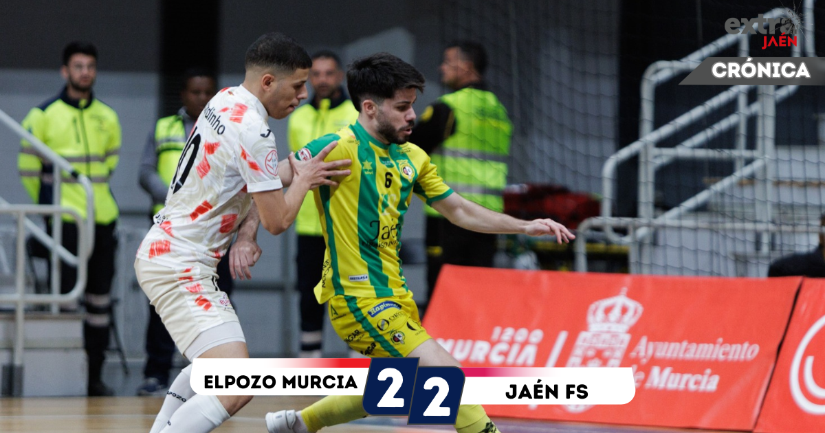 El Jaén Paraíso Interior dejó escapar vivo a ElPozo Murcia, líder de la liga que estuvo a merced del equipo jiennense, que acusó la falta de acierto en los metros finales (2-2). El equipo de Dani Rodríguez dejó muchas cosas positivas en su visita al equipo murciano, pero la sensación no deja de ser agridulce, pues el cuadro amarillo tuvo contra las cuerdas y en superioridad numérica al líder en el tramo final, pero las paradas de Edu fueron claves.
