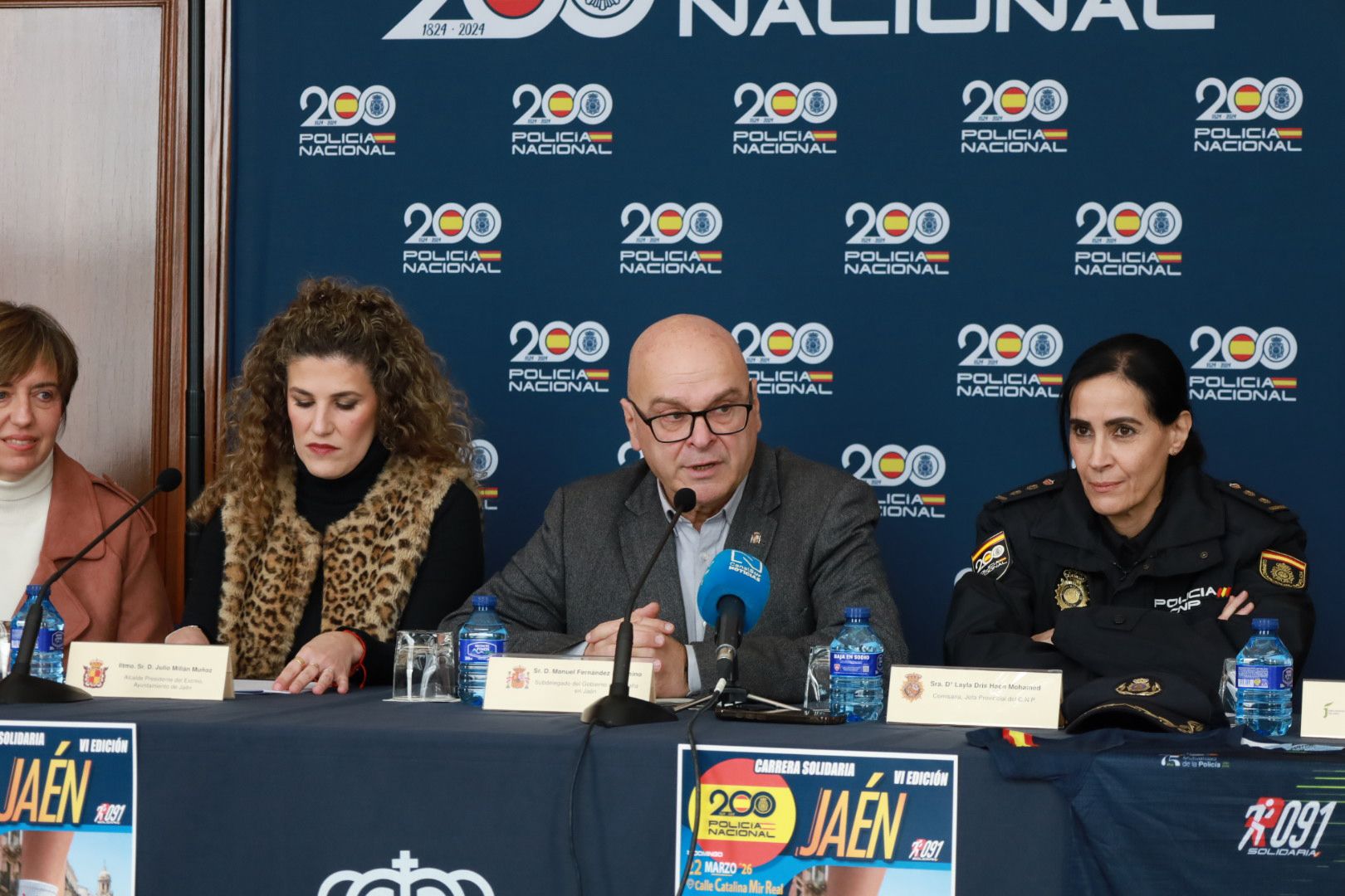 El subdelegado del Gobierno de España en Jaén, Manuel Fernández, junto a la Comisaria Jefa de la Policía Nacional en Jaén, Layla Dris-Hach Mohamed han presentado la IV Carrera Solidaria ‘Ruta 091’, a favor de la Asociación de Daño Cerebral Adquirido de Jaén. Un acto en el que han estado acompañados por la concejala de Deportes, Beatriz López; la vicepresidenta 2° y Diputada de Igualdad, Política Social y Juventud, Francisca Medina; el Director de Zona Banco Santander Jaén, José Antonio Lara; el director de Caja Rural de Jaén, Juan Gallego y la presidenta de ADACEA en Jaén, María Muñoz.