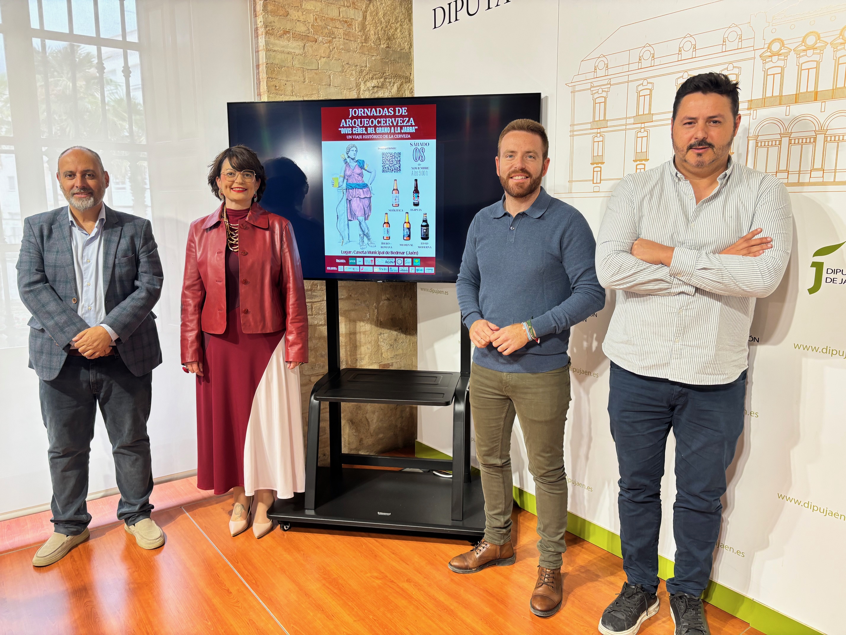 La diputada de Gobierno Electrónico y Régimen Interior, Inés Arco, ha intervenido junto al alcalde de Bedmar, Enrique Carreras; el director de la Universidad Nacional de Educación a Distancia (UNED) en la provincia de Jaén, Vicente Ruiz; y el director del Centro de Investigaciones Prehistóricas de Sierra Mágina ‘Paleomágina’, Marco Antonio Bernal; en la presentación de las Jornadas Arqueocerveza ‘Divis ceres, del grano a la jarra’.