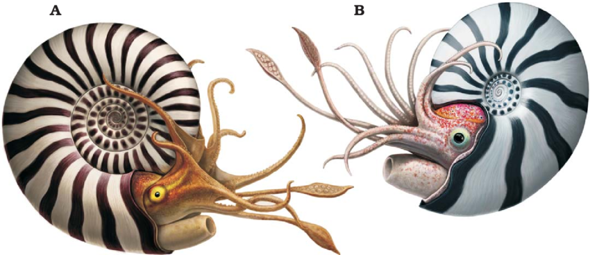 Los ammonites eran moluscos cefalópodos con una concha enrollada en espiral y con un cuerpo blando en su interior provisto de tentáculos, como los calamares y los nautilus actuales, que los convertieron en unos grandes depredadores de los mares jurásicos. Aparecieron hace unos 400 millones de años y se extinguieron hace unos 60 millones de años, casi al mismo tiempo que los dinosaurios. Su nombre deriva de Ammon, dios egipcio que se representaba con cuernos de carnero, similares a la concha de un ammonite.