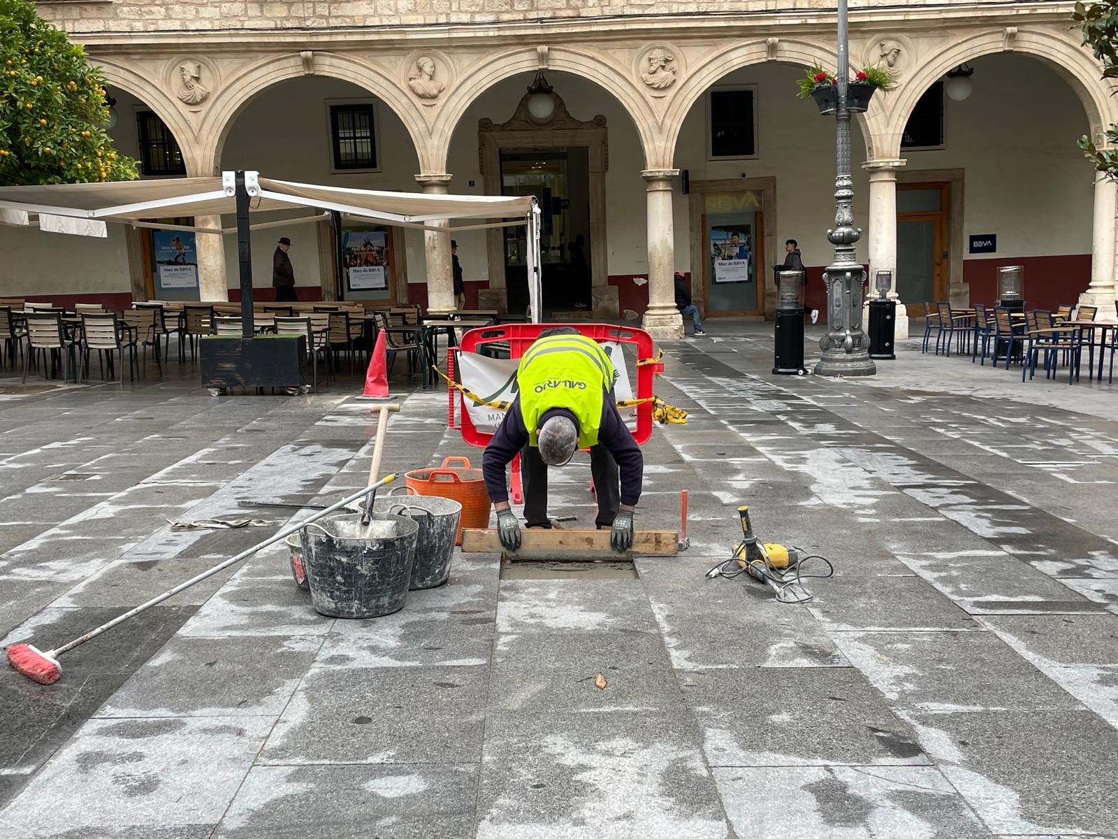 El Ayuntamiento de Jaén intensifica durante los meses de noviembre y diciembre el trabajo de reposición y reparación de acerados y solería en distintos puntos de la capital utilizando para ello tanto medios propios de personal y materiales de la Concejalía de Mantenimiento urbano como con el apoyo de Aqualia y dos empresas especializadas, sobre todo para puntos de valor patrimonial.