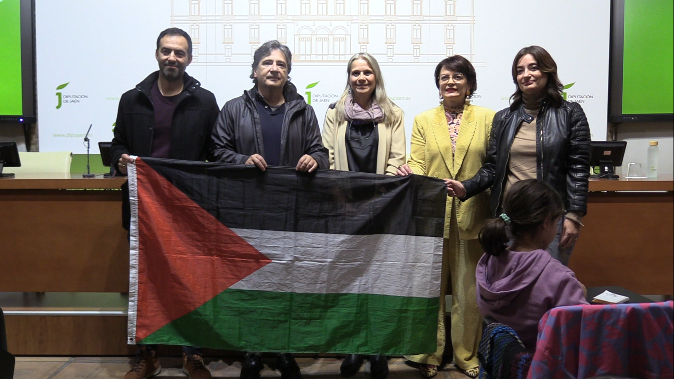 El acto de entrega se ha celebrado en el Aula de Cultura del Palacio Provincial de la Diputación y ha contado con la presencia de la diputada de Gobierno Electrónico y Régimen Interior, Inés Arco; la concejala delegada de Igualdad y Educación, Movimientos Sociales y Cooperación al Desarrollo del Ayuntamiento de Jaén, Eva Funes; y Javier Díaz, miembro de la plataforma ‘Jaén con Palestina’, organizadora del festival.