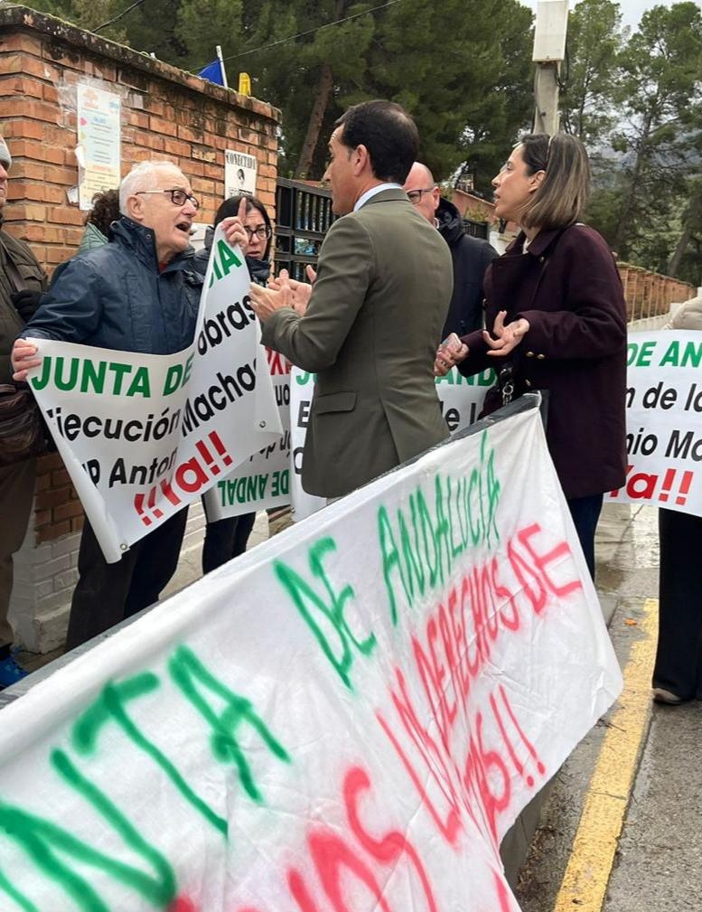 La Plataforma pealeña en Defensa del CEIP Antonio Machado de Peal de Becerro se desplazó el pasado viernes a la localidad vecina de Quesada con motivo de la visita del delegado Territorial de Educación y Desarrollo Territorial, Francisco José Lozano, al que ha recibieron con pancartas para exigir el inicio inmediato de las obras del CEIP Antonio Machado, comprometidas por la Junta de Andalucía.