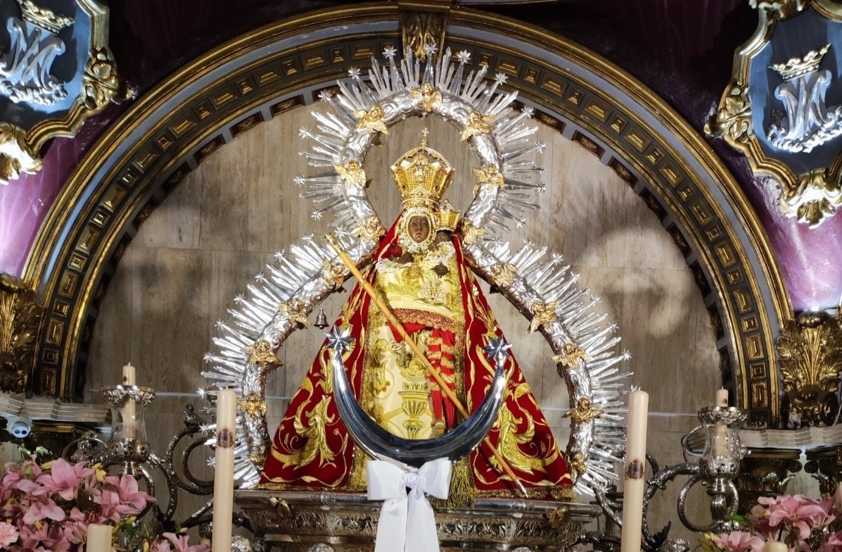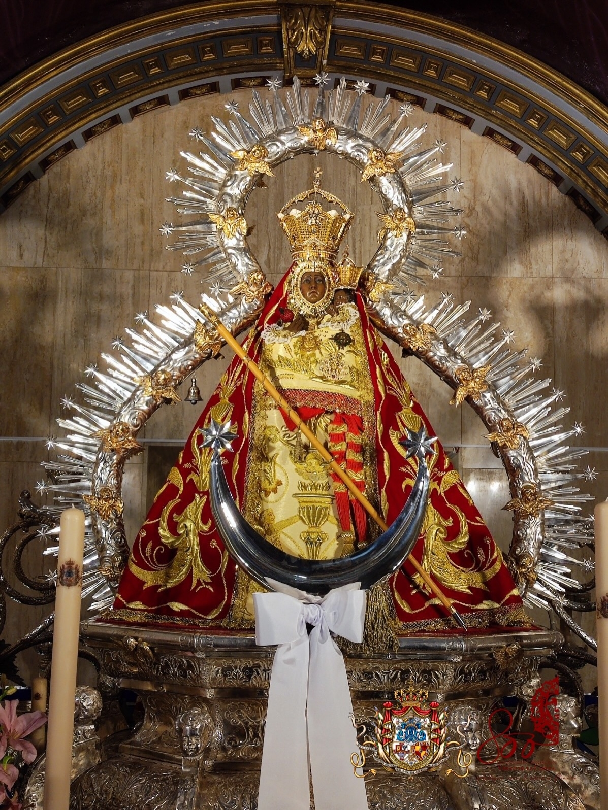 Así muestra la Real e Ilustre Cofradía Matriz, vestida por su Camarera, la Hermana Mayor Teresa Flores a la Santísima Virgen de la Cabeza.