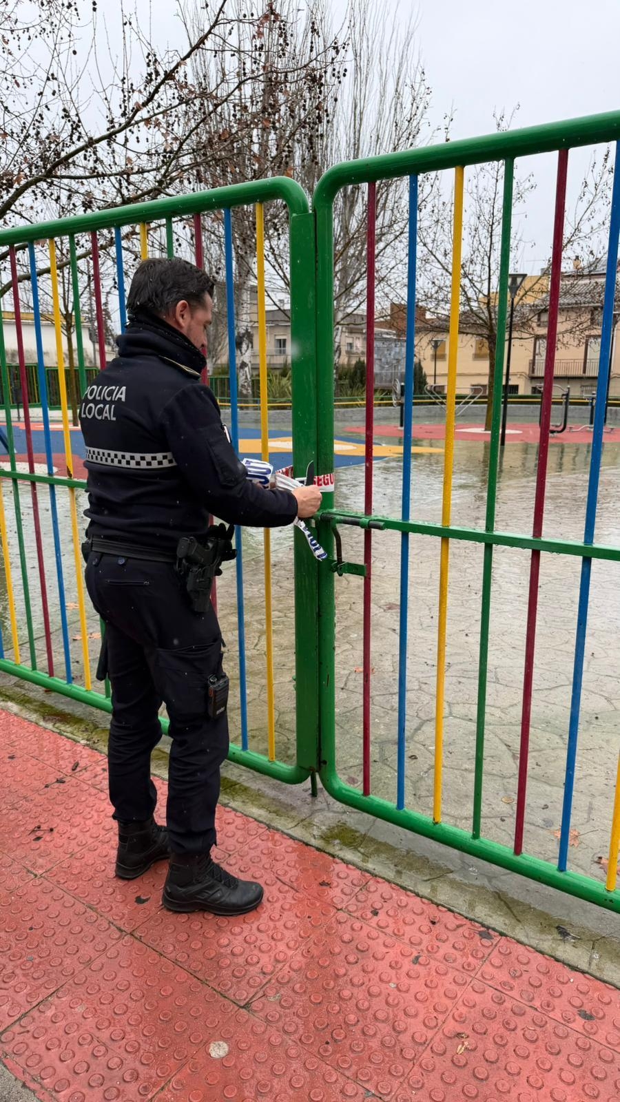 La Policía Local de Torredelcampo está coordinando un dispositivo de seguridad, supervisando las zonas y velando por el cumplimiento del cierre de instalaciones, además de atender posibles incidencias, después de que el Ayuntamiento de la localidad haya ordenado el cierre preventivo de parques y zonas ajardinadas hasta que finalice el temporal, a fin de evitar "cualquier riesgo por la caída de ramas, árboles otros elementos".