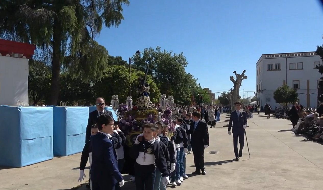 Salida procesional de la Imagen de Nuestra Señora del Mayor Dolor en la Semana Santa Chica de SAFA Andújar.