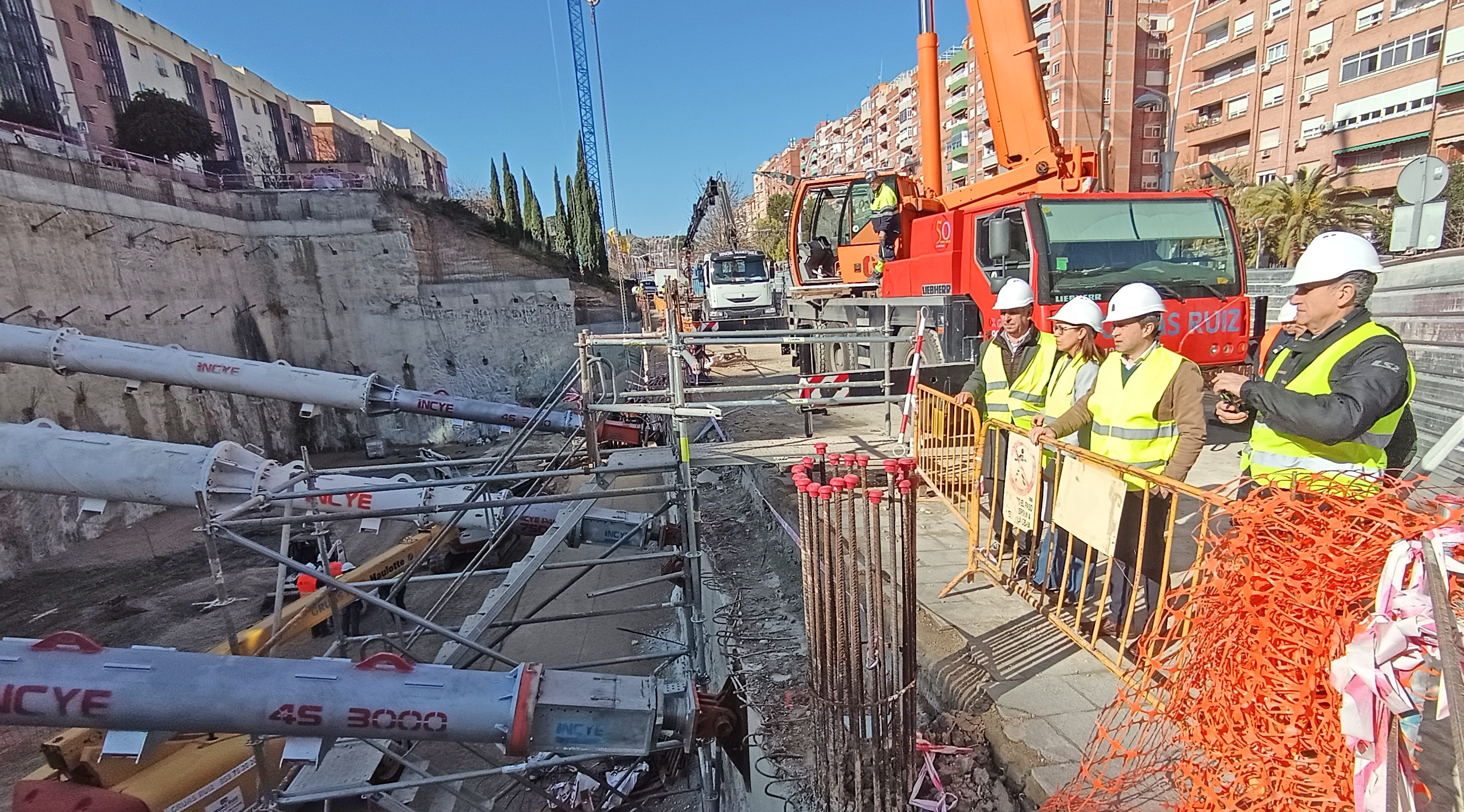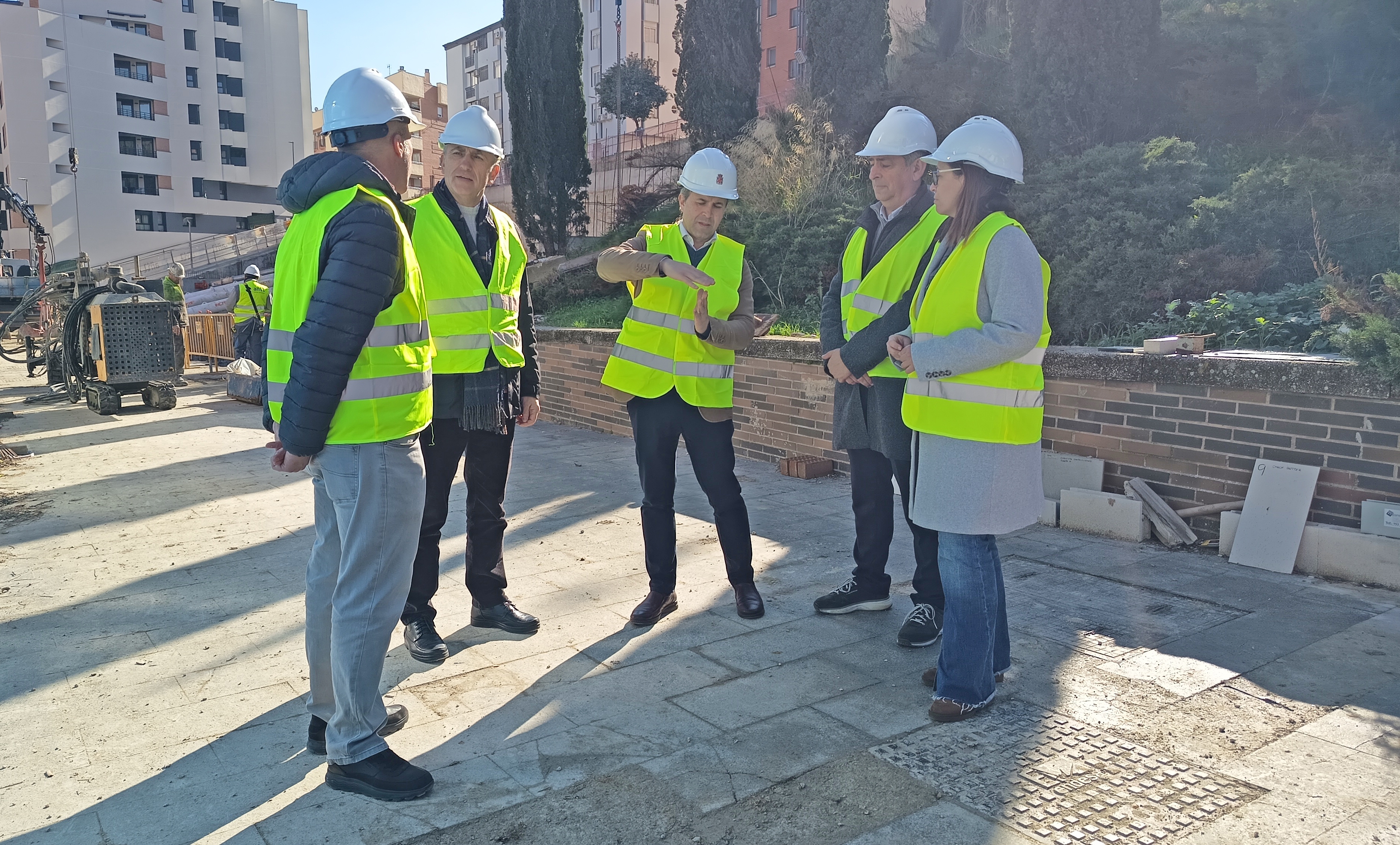El alcalde de Jaén, Julio Millán, ha visitado los trabajos, acompañado de la Segunda Teniente de Alcalde y concejala de Urbanismo, África Colomo, y el concejal de Mantenimiento Urbano, Javier Padorno, y junto a técnicos municipales para comprobar las medidas de sujeción que se vienen tomando por parte de la empresa promotora de las 93 viviendas que se construyen en la Avenida de Andalucía. Millán ha comprobado que se cumplen hoy 72 horas desde que cesaron los movimientos de tierra, tal y como han confirmado los estudios topográficos que se vienen realizando.