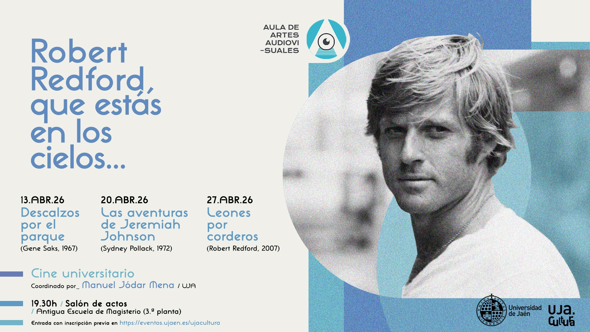 Tras un trimestre cargado de actividad en el marco del Aula de Artes Audiovisuales del Vicerrectorado de Cultura, a partir del lunes 13 de abril se podrá disfrutar de las proyecciones del último ciclo del cine universitario denominado ‘Robert Redford, que estás en los cielos…’, coordinado por el profesor de la UJA Manuel Jódar Mena y que contará con tres películas: Descalzos en el parque (1967), Las aventuras de Jeremiah Johnson (1972) y Leones por corderos (2007).