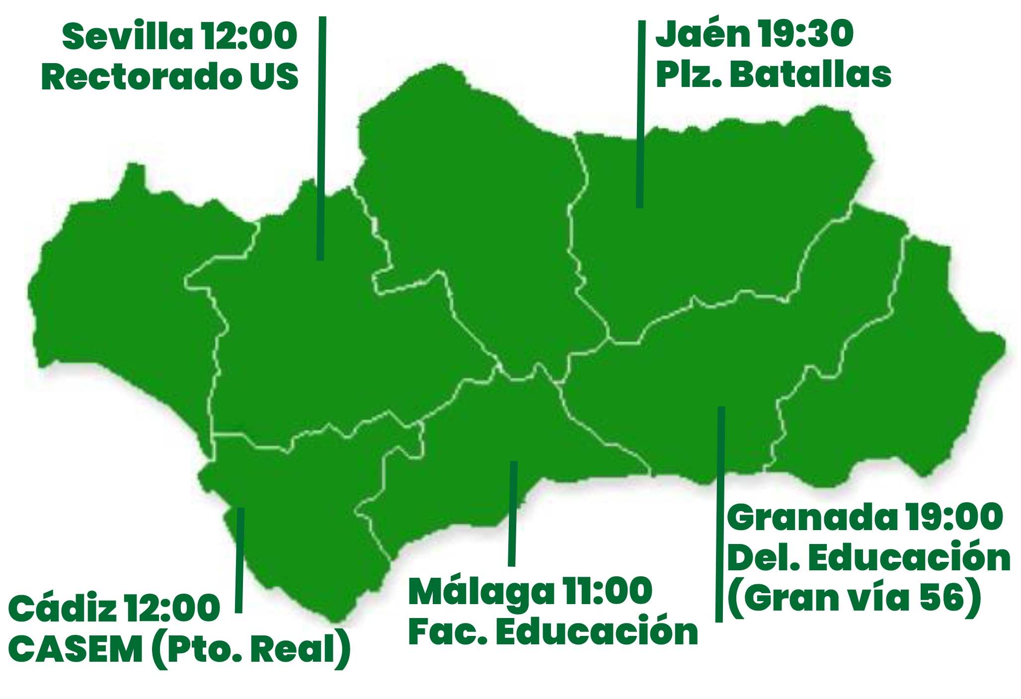 De este modo, junto a la protesta de Jaén, el próximo miércoles 29 de abril, se llevarán a cabo concentraciones simultáneas en cinco provincias andaluzas para denunciar la "ofensiva mercantilista" que sufre el sistema universitario y reclamar una financiación 100% pública y soberana.