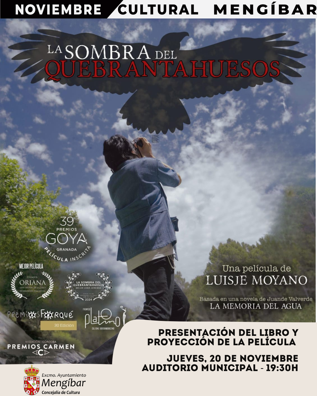 Las personas que acudan a ver esta cinta, que se exhibirá este jueves, 20 de noviembre, en el Auditorio Municipal de Mengíbar a partir de las 19.30 horas, podrán asistir también a un encuentro con el realizador de esta cinta, Luisje Moyano. En este acto se presentará, además, el libro vinculado a este largometraje, que lleva por título ‘La memoria de la sombra’ y que incluye la novela original, el guion y fotos del rodaje de este filme.