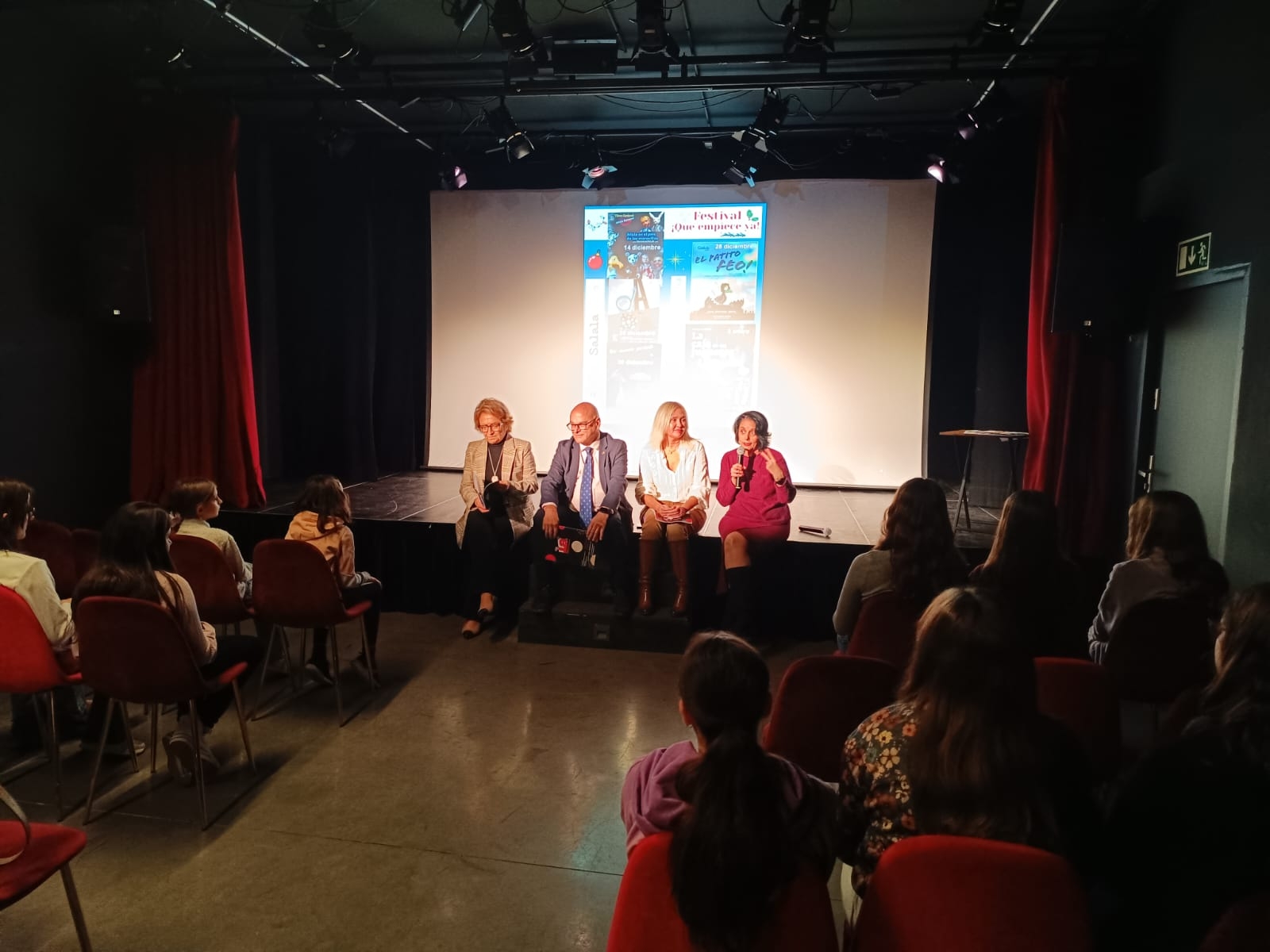 La concejal de Cultura, Turismo, Fiestas y Patrimonio Histórico, María Espejo, junto con el subdelegado del Gobierno, Manuel Fernández, la presidenta de la Fundación Unicaja de Jaén, Carmen Espín y la directora de Teatro La Paca, Carmen Gámez, han presentado el Festival 'Que Empiece Ya' (Una Navidad de Cuento), una de las citas más importantes del teatro familiar y escolar de estas fechas navideñas que estará protagonizada por cuatro premios MAX de Teatro.