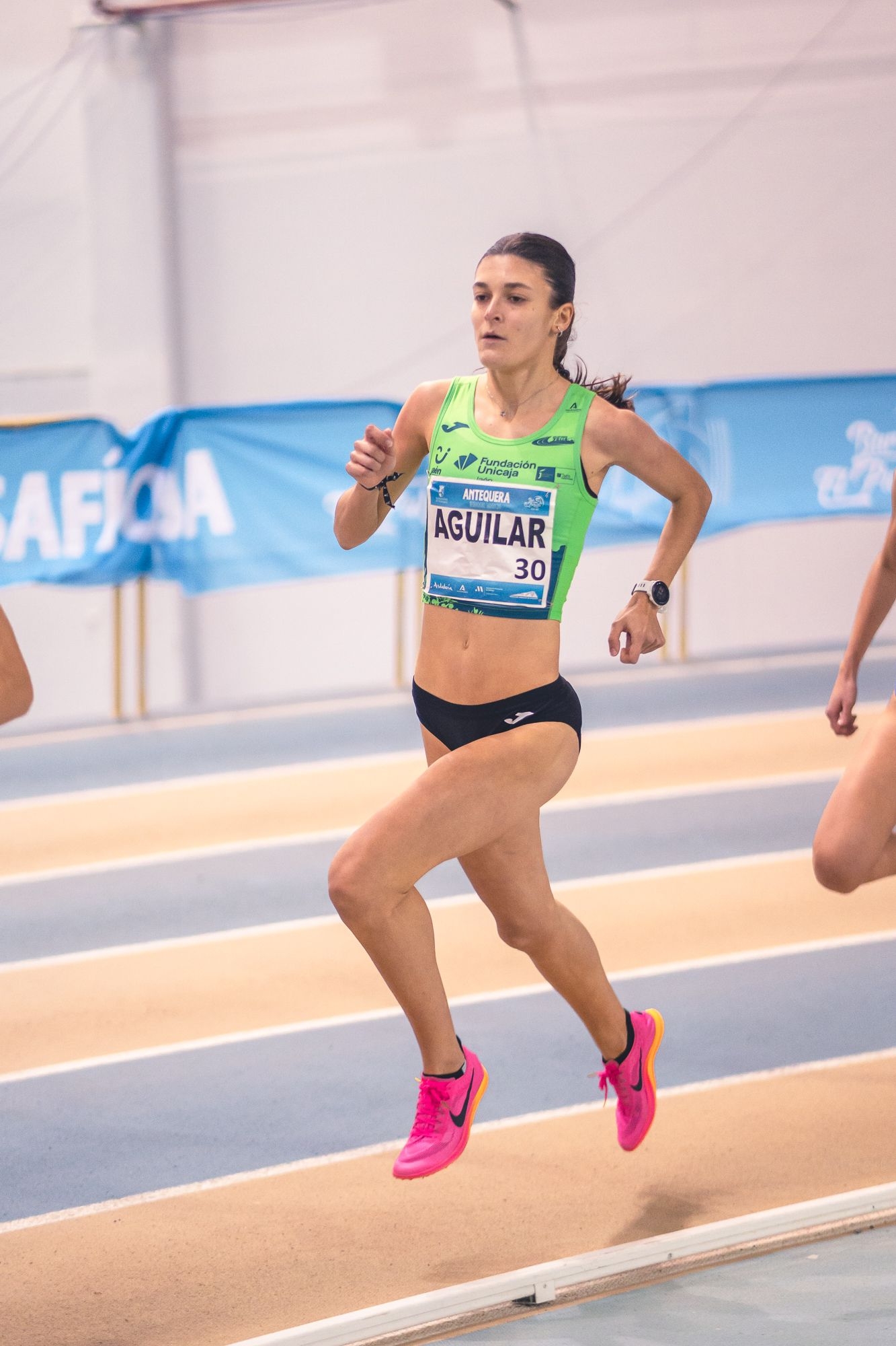 El calor del largo verano se disipa definitivamente, estamos en septiembre. Los entrenamientos de la nueva temporada son exigentes. Son las 20:00 de la noche y en Jaén ya no hace calor, las primeras series en la pista cuestan mucho. Pero Jimena Aguilar Araque (Jaén 2008) sigue corriendo motivada. Es un sacrificio cómplice. Cuando termina la última serie, sonríe. Su padre Rafa, la espera al borde de la pista y le entrega su bebida isotónica. Más tarde, Lola su madre, la recoge para llevarla a sus clases de inglés.