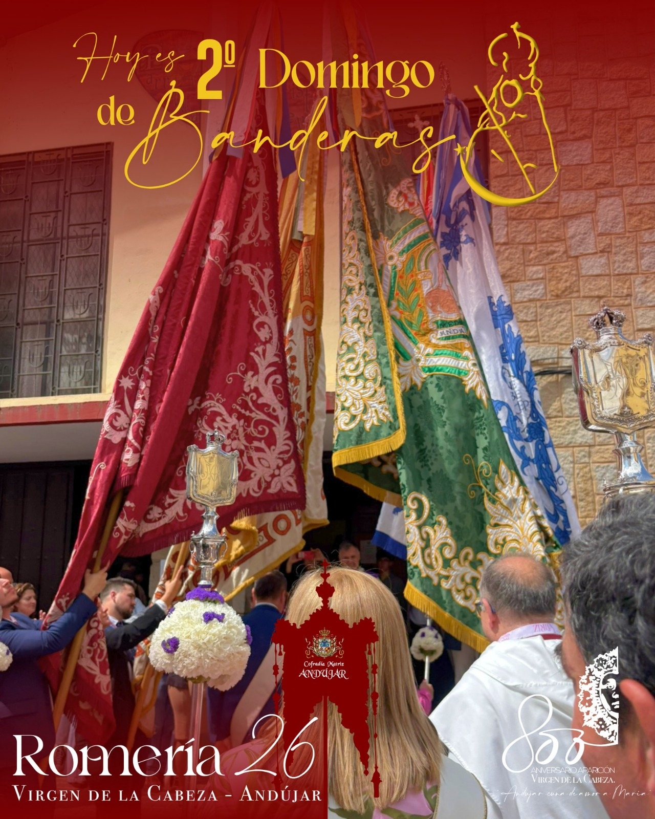 Desde dicha Ermita se reanudará la Proclamación y Convite de Banderas hoy domingo a las 16´45 horas en dirección al Convento de Madres Mínimas, visitando seguidamente la Residencia de Mayores BOUCO donde concluirán los actos de este domingo organizados por la Real Cofradía Matriz de la Virgen de la Cabeza que, durante su recorrido por las parroquias de Andújar estuvieron acompañados de las autoridades locales así como diferentes colectivos relacionados con la Romería de la Virgen de la Cabeza; la Banda de Música Maestro Amador y el Coro de la Cofradía Matriz; así como gran cantidad de fieles y romeros, quienes al igual que los diferentes párrocos de los templos visitados lanzaron numerosos ¡¡ Vivas a la Virgen de la Cabeza !!