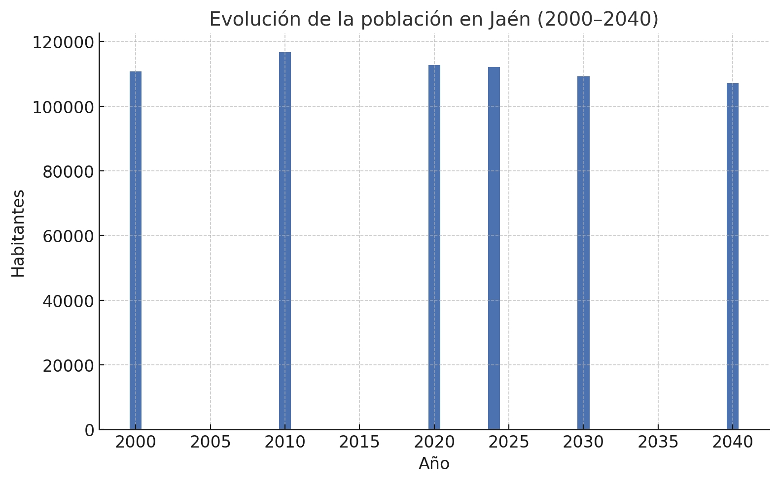 La pérdida de población de la capital jiennense es una constante desde el año 2010, es decir cuando se alcanzaron 116.790 habitantes. El año pasado la ciudad contaba con 112.074 habitantes, lo que significa que en 15 años ha perdido 4.716 habitantes.